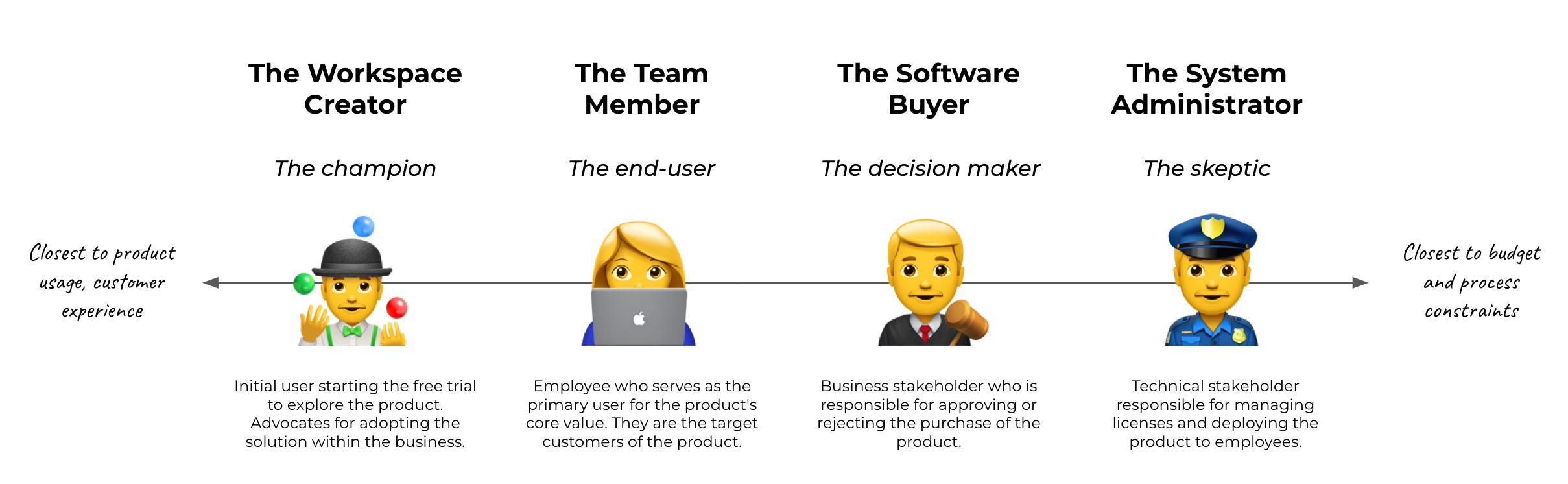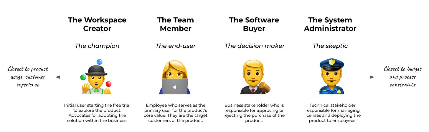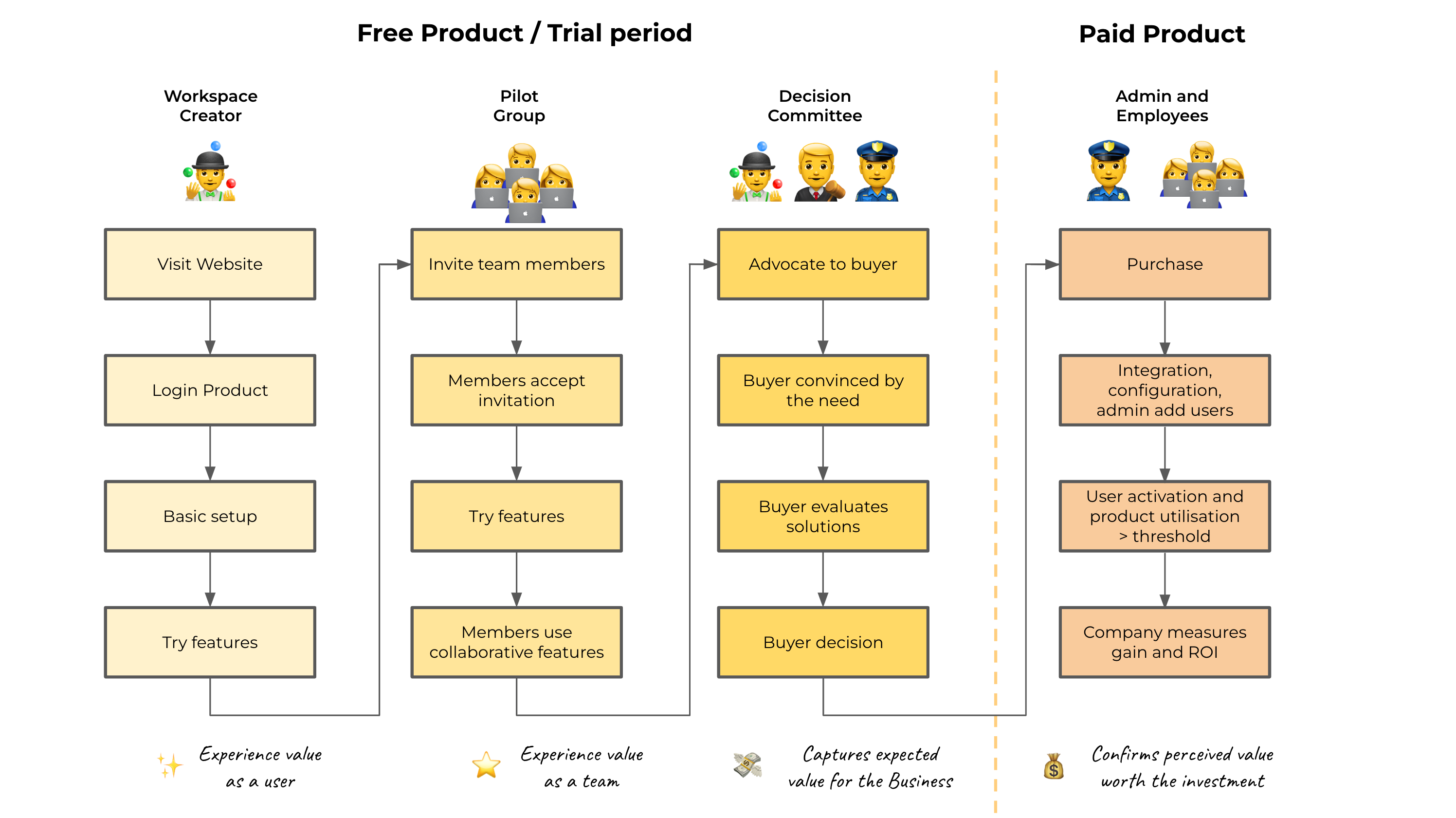 We won't dive further into the buyer's "aha moment" process since interactions within the decision committee typically occur offline or outside of the product, making advanced product analysis less relevant.